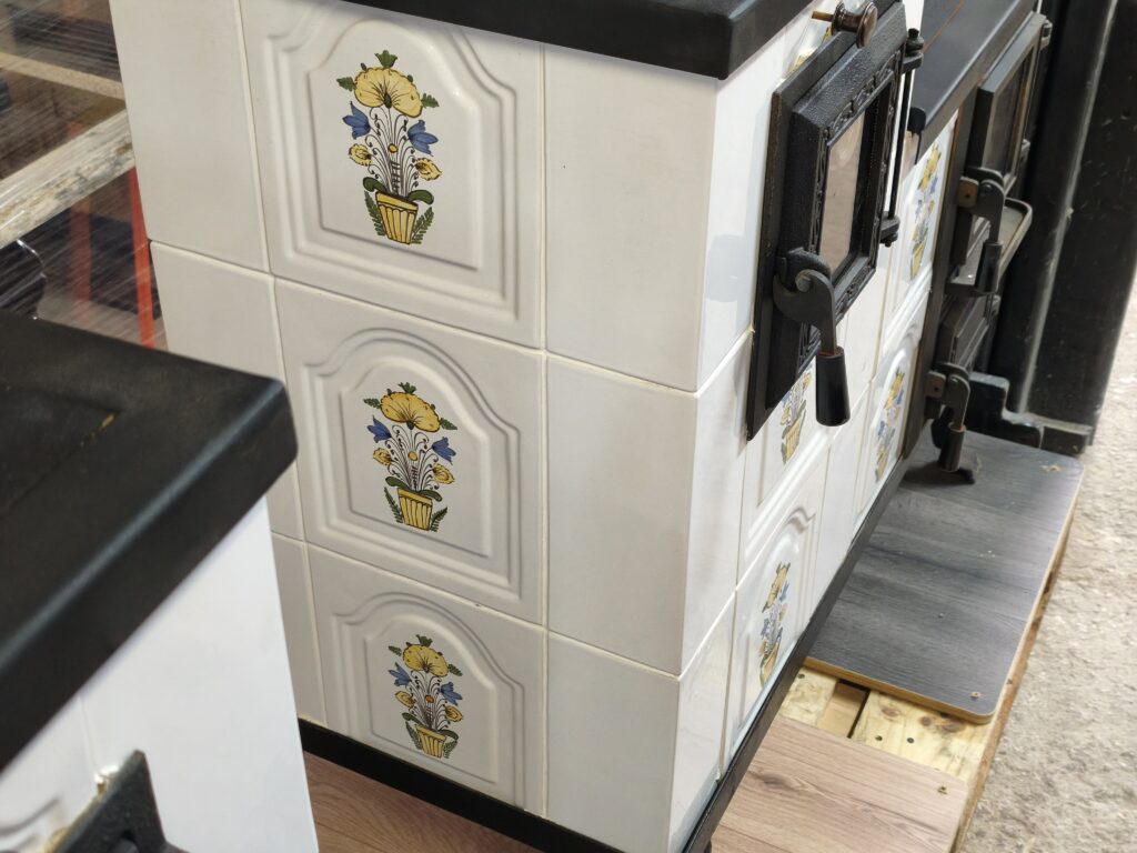 Kamna jsou vyzděná ze šamotových cihel a šamotové malty. Na povrchu je keramika. Plotny, nožičky a dvířka jsou z litiny. Kamna budou doručena kompletně smontovaná, tak jak je vidíte na fotografiích. Stačí je pouze přenést na místo a připojit ke komínu. Kamna mají evropský certifikát CE a štítky. Jsou akumulační. Doba, po kterou zůstávají horká po vyhasnutí ohně, závisí na výkonu kamen a délce topení. Modely s výkonem 10 kW zůstávají horké 5–7 hodin. Nejmenší kamna s výkonem 5 kW vydrží teplá 2–3 hodiny.
